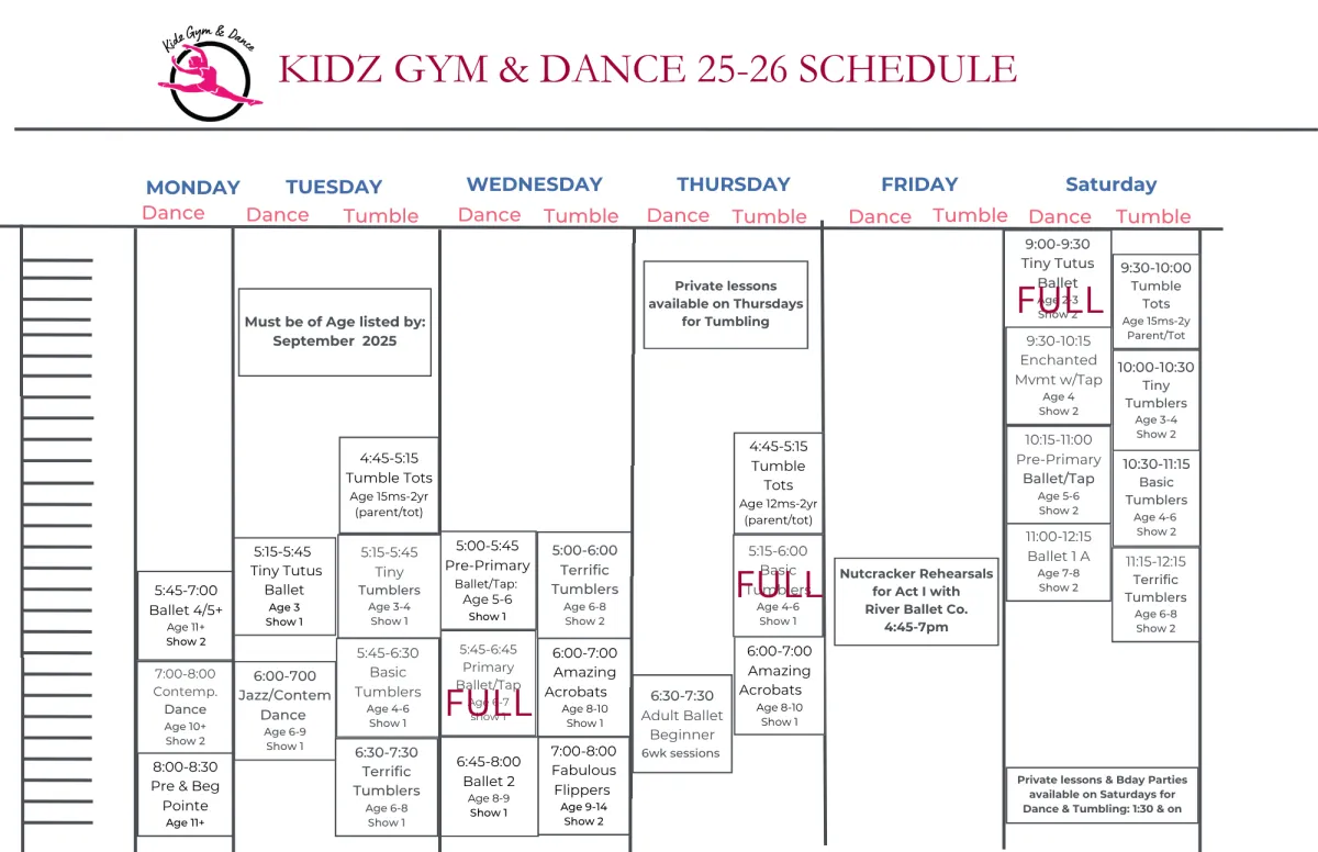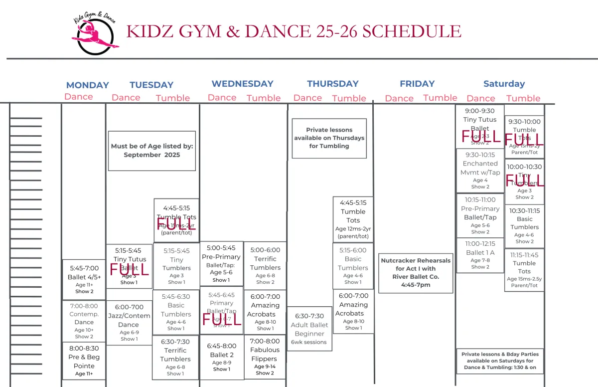After trying many dance studios, we found the perfect fit for our 6-year-old daughter. She has been dancing and tumbling at Kidz Gym & Dance since she was 4. She LOVES the atmosphere, the instructors, the friendships, and the opportunities for performance. She currently is enrolled in a ballet/tap class and a tumbling class. The confidence she has gained and her body awareness is the most beautiful thing to watch. We love Miss Vickie and we love that competition is not a part of the art.